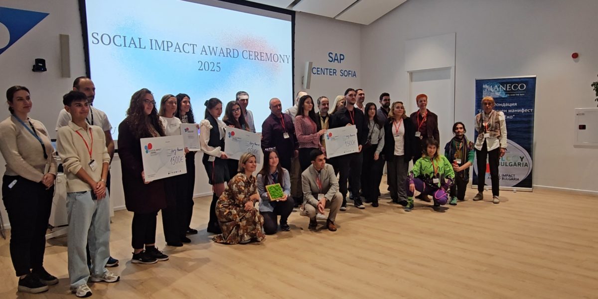 Наградата за социално въздействие подкрепя млади социални предприемачи в ранен етап на развитие и внедряване на иновативни бизнес решения, преодоляващи обществените предизвикателства.